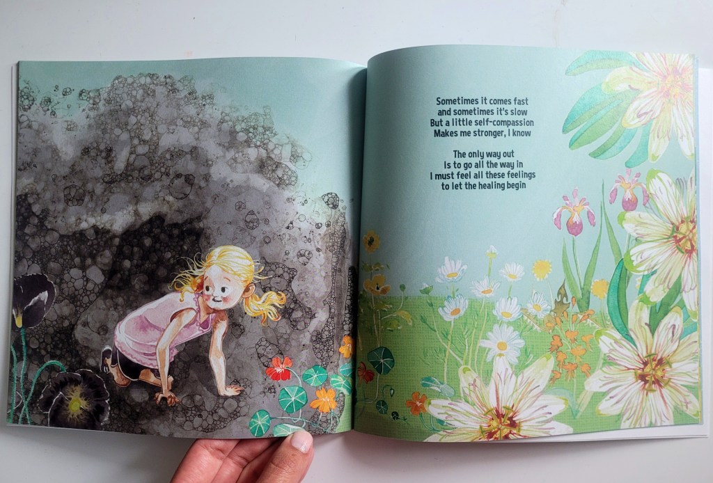 This Thing Has a Name also emphasizes the availability of various tools to assist children during challenging moments. The captivating illustrations guide readers from chaos and darkness to finding inner peace, symbolized by beautiful flowers and serene gardens. These visual metaphors inspire young hearts to seek solace and discover their strength.